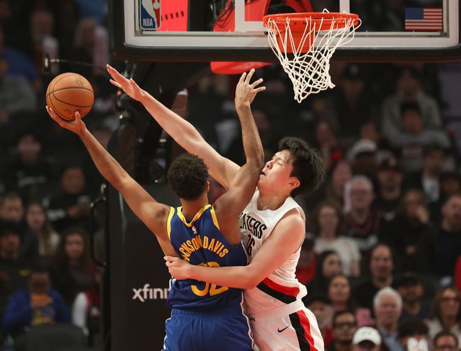 - 2025年10月25日 杨瀚森7分钟2分1板2帽 开拓者轻取勇士迎首胜 库里空砍35+6